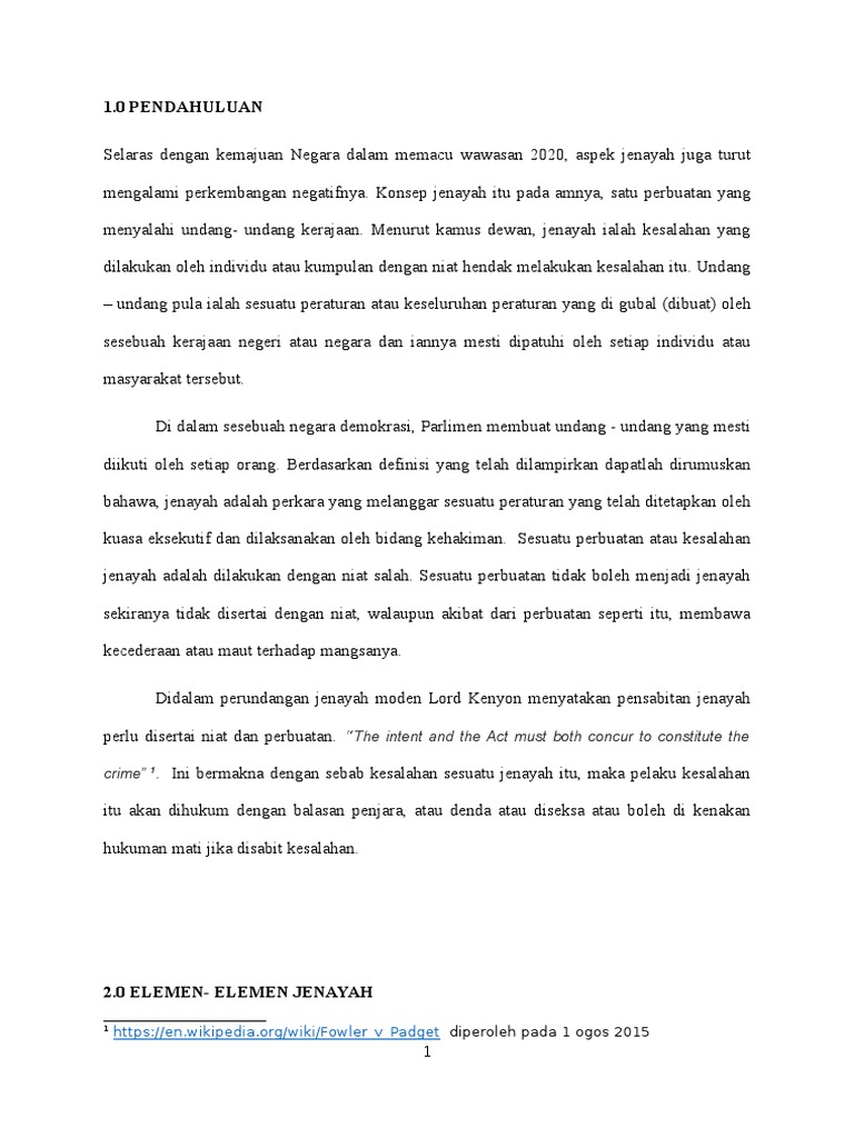 Tetapi yang lebih penting adalah yang lain. Perbuatan dan niat mesti ada serentak untuk mewujudkan jenayah kes Fowler V Padet 1978 TTR 509. Assalammualaikum wbt Proses litigasi atau prosiding perbicaraan bagi kes jenayah adalah berbeza dengan kes sivil atau kes mal.