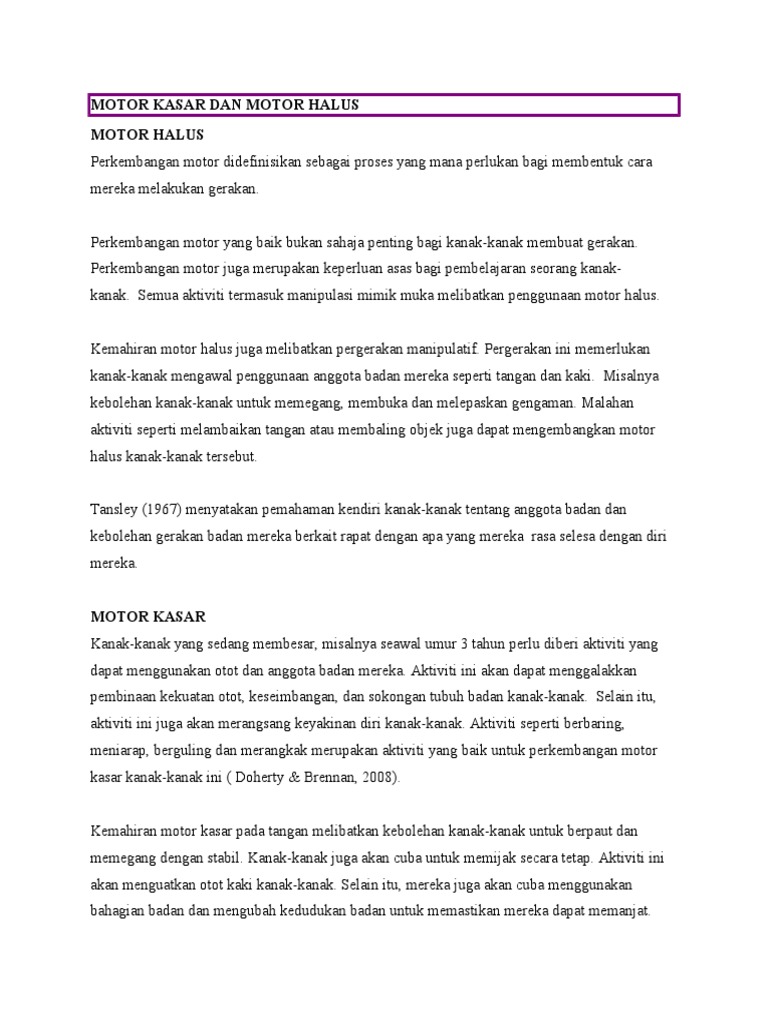 Perkembangan Motor Halus Dan Kasar Kanak Kanak Pdf