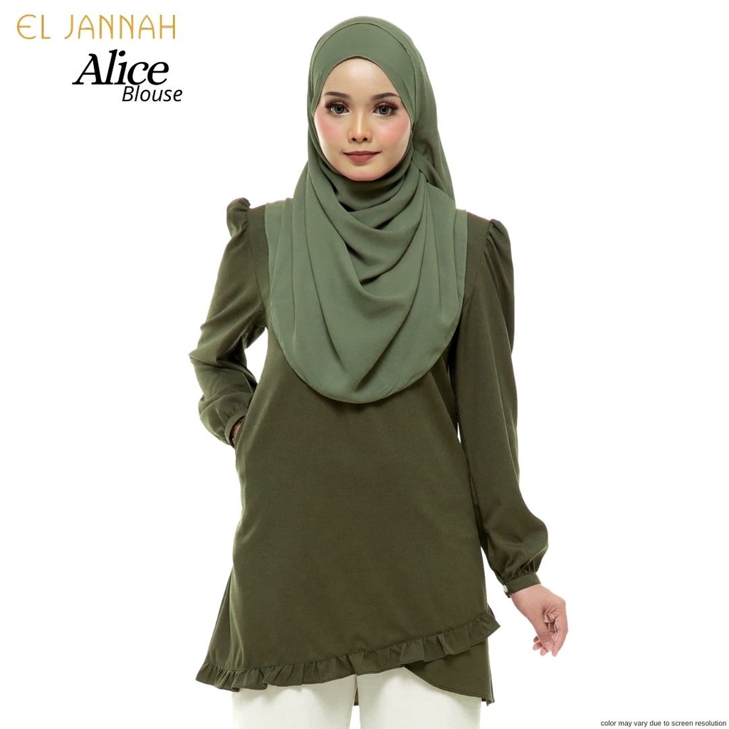 Sale Blouse Alice Muslimah Moss Green Hijau Lumut Nursing Wudhu Friendly Plain Selesa Puff Shoulder Ruffle Pocket Shopee Malaysia